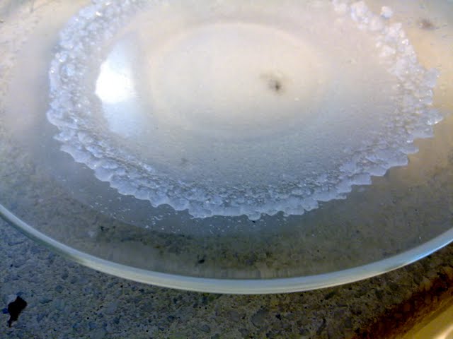 Luego la pusimos en un platito en la ventana, junto con nuestras plantas, y esperamos a que se evaporara el agua y nos apareciera, de nuevo, la sal.