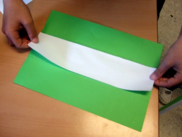 - Recortamos el folio blanco para pegarlo en el verde. Uno por cada cara.
