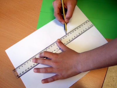 - Como la bandera tiene tres franjas iguales, dividimos los folios en tres partes iguales horizontalmente.