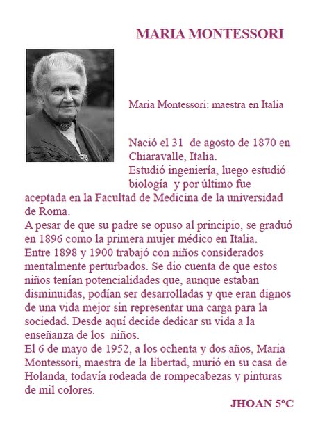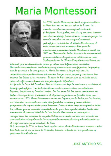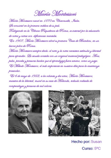En este caso, hemos conocido a María Montessori, maestra italiana.